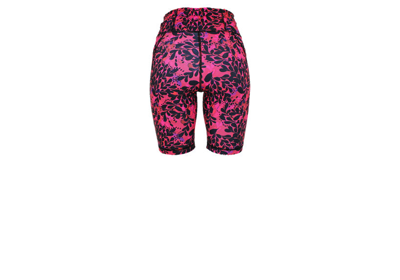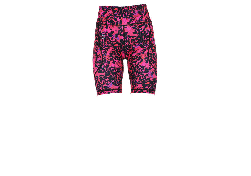 Stand out in the Noir Bloom long shorts, featuring bold botanical artwork on a vibrant pink watercolour base. These shorts are UV reactive, glowing under UV lighting for high-energy classes like Clubbercise. High waisted and squat proof, they include a rear zip pocket and optional thigh pockets. Ideal for running, cycling, gym workouts, HIIT sessions and bright everyday summer wear.
