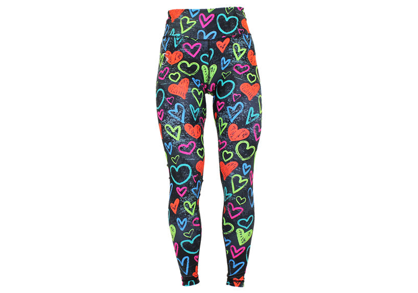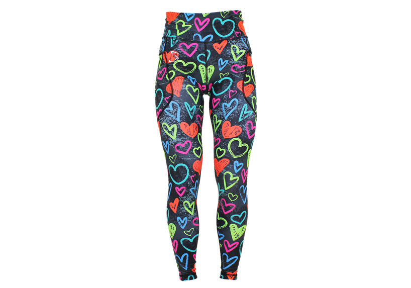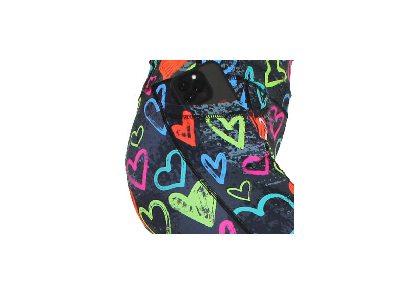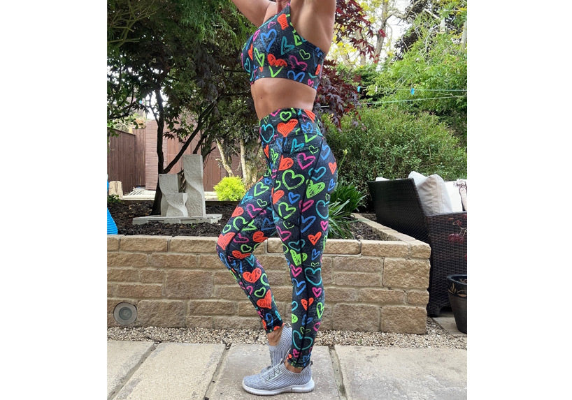 Stay cosy and colourful in our Arty Hearty winter leggings. Lightly fleece-lined for warmth, these high-waisted leggings come with deep thigh pockets and a rear zip pocket. Ideal for winter runs, outdoor workouts, or dog walks. Available in tall, petite, and regular.