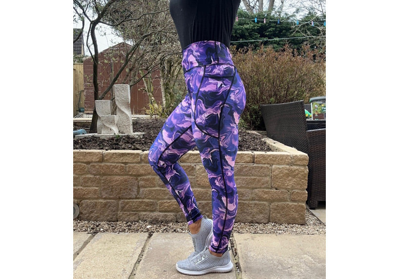 Keep warm while looking stylish with our Lavender Haze Winter Leggings. These high-waisted, lightly fleece-lined leggings feature a beautiful purple oil slick pattern, ideal for chilly outdoor activities or cozy days indoors. They offer a high waist, rear zip pocket, and optional thigh pockets, available in standard, tall, and petite sizes.