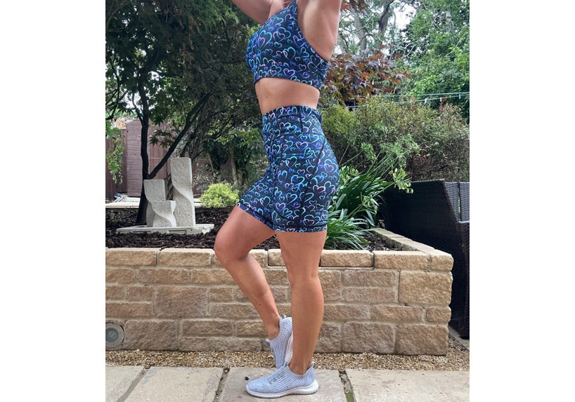 The Lighthearted mid shorts are designed for all-round performance. With a supportive high-rise waistband, optional thigh pockets, and a concealed rear zip, they’re as functional as they are fun. The neon hearts on black add flair while the squat-proof fabric ensures confidence for HIIT, gym sessions, or hiking.